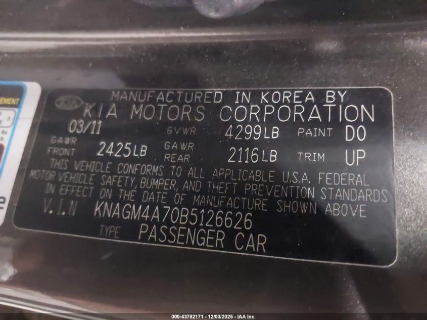 2011 KIA OPTIMA 2011 року Бензин, 2.4, Передний привод, vin - KNAGM4A70B5126626 из США