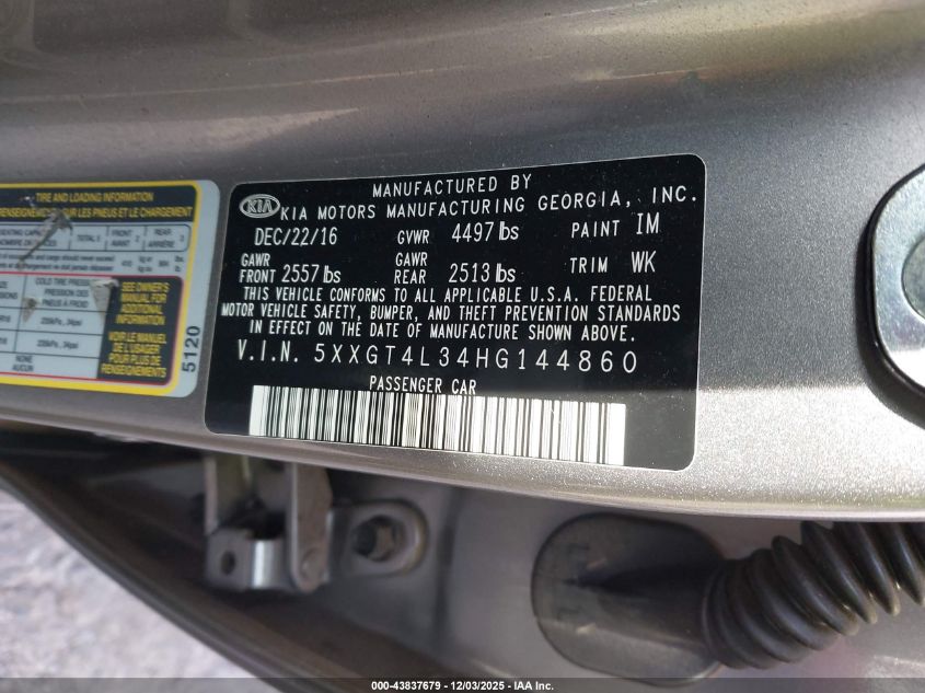 2017 KIA OPTIMA 2017 року Бензин, 2.4, Передний привод, vin - 5XXGT4L34HG144860 из США