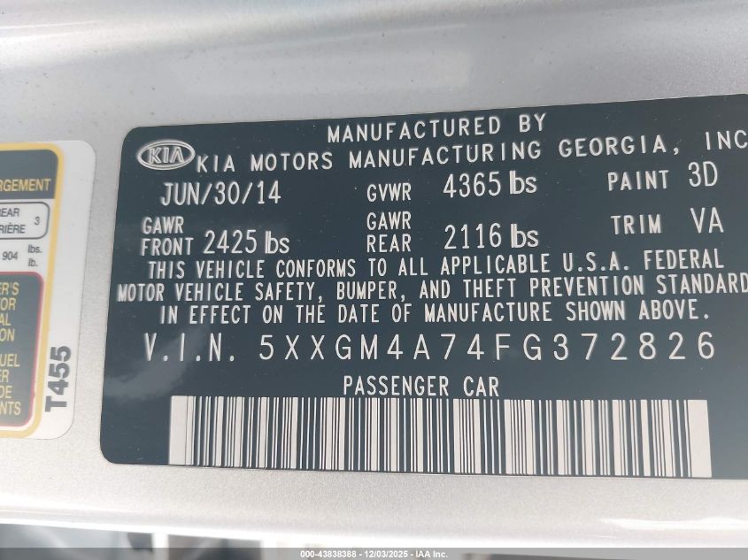 2015 KIA OPTIMA 2015 року Бензин, 2.4, Передний привод, vin - 5XXGM4A74FG372826 из США