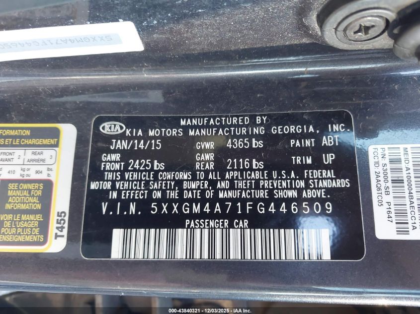2015 KIA OPTIMA 2015 року Бензин, 2.4, Передний привод, vin - 5XXGM4A71FG446509 из США