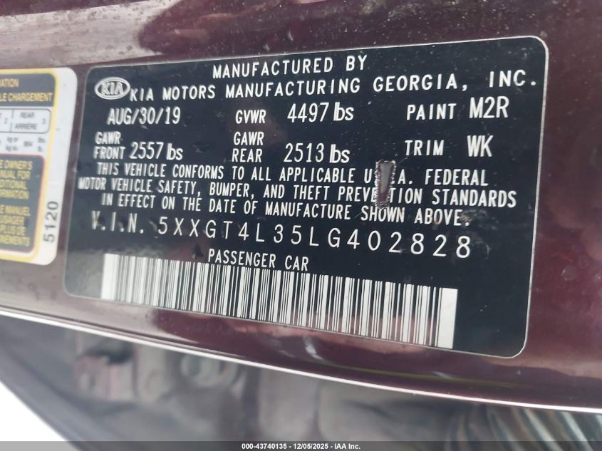 2020 KIA OPTIMA 2020 року Бензин, 2.4, Передний привод, vin - 5XXGT4L35LG402828 из США