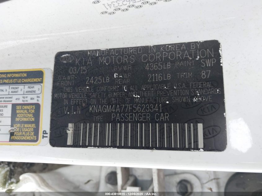 2015 KIA OPTIMA 2015 року Бензин, 2.4, Передний привод, vin - KNAGM4A77F5623341 из США