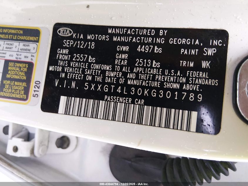 2019 KIA OPTIMA 2019 року Бензин, 2.4, Передний привод, vin - 5XXGT4L30KG301789 из США