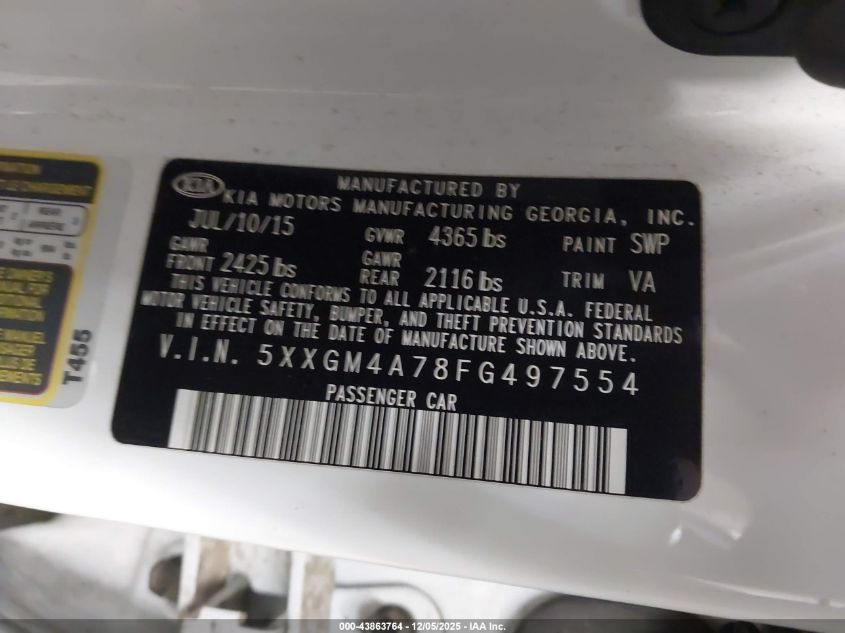 2015 KIA OPTIMA 2015 року Бензин, 2.4, Передний привод, vin - 5XXGM4A78FG497554 из США