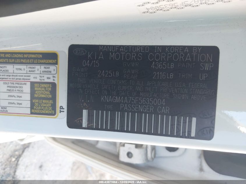 2015 KIA OPTIMA 2015 року Бензин, 2.4, Передний привод, vin - KNAGM4A75F5635004 из США