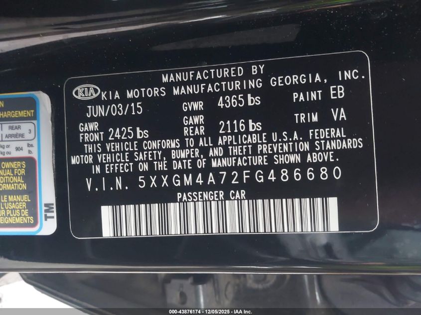 2015 KIA OPTIMA 2015 року Бензин, 2.4, Передний привод, vin - 5XXGM4A72FG486680 из США
