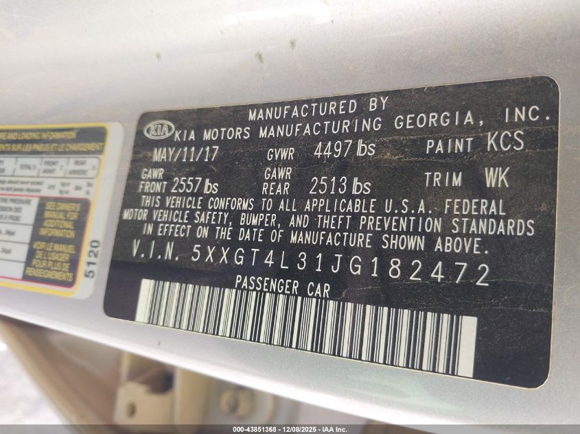 2018 KIA OPTIMA 2018 року Бензин, 2.4, Передний привод, vin - 5XXGT4L31JG182472 из США