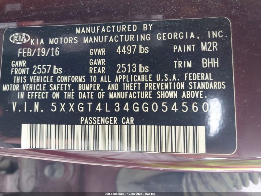 2016 KIA OPTIMA 2016 року Бензин, 2.4, Передний привод, vin - 5XXGT4L34GG054560 из США