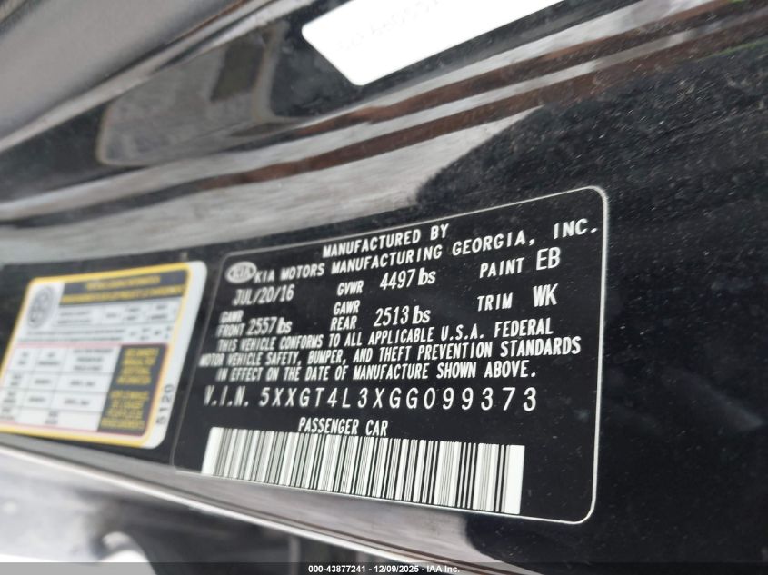 2016 KIA OPTIMA 2016 року Бензин, 2.4, Передний привод, vin - 5XXGT4L3XGG099373 из США