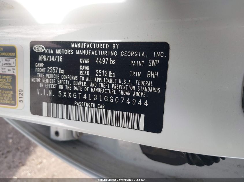 2016 KIA OPTIMA 2016 року Бензин, 2.4, Передний привод, vin - 5XXGT4L31GG074944 из США