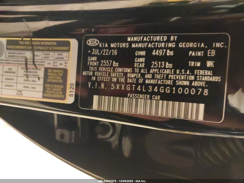 2016 KIA OPTIMA 2016 року Бензин, 2.4, Передний привод, vin - 5XXGT4L34GG100078 из США