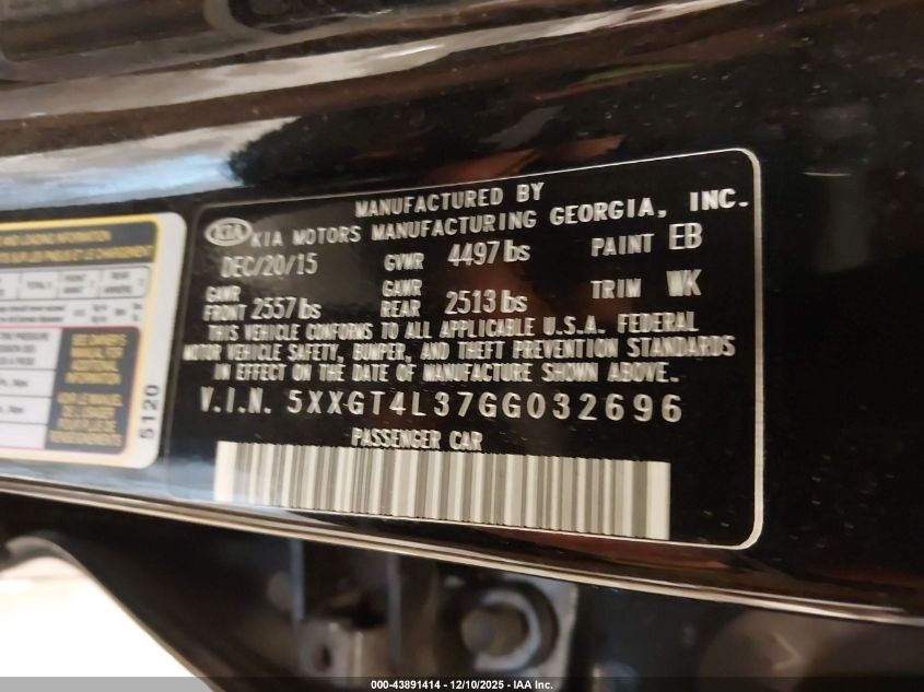 2016 KIA OPTIMA 2016 року Бензин, 2.4, Передний привод, vin - 5XXGT4L37GG032696 из США