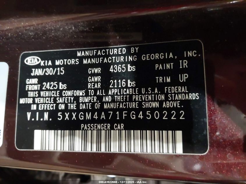 2015 KIA OPTIMA 2015 року Бензин, 2.4, Передний привод, vin - 5XXGM4A71FG450222 из США