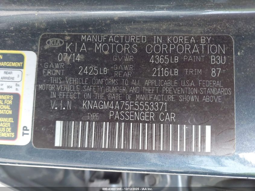 2015 KIA OPTIMA 2015 року Бензин, 2.4, Передний привод, vin - KNAGM4A75F5553371 из США