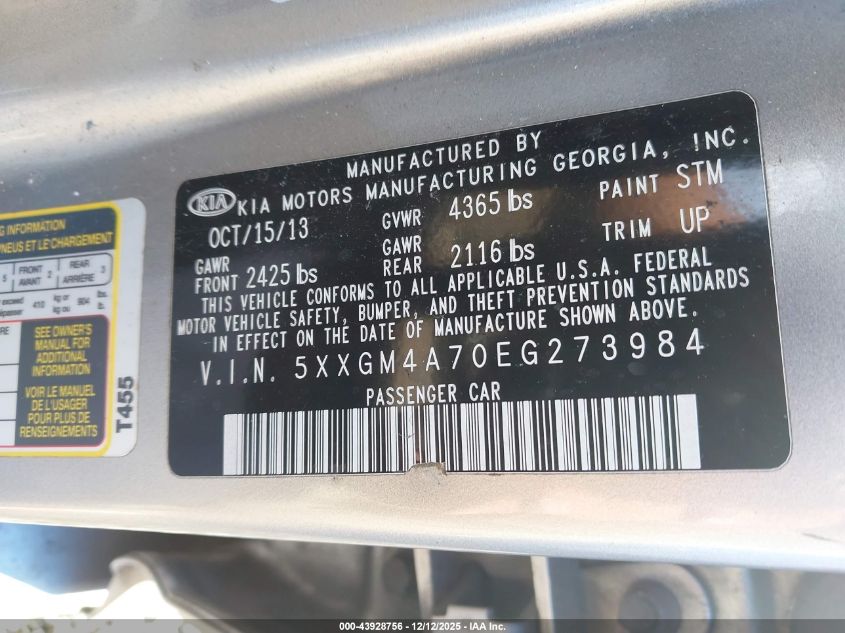 2014 KIA OPTIMA 2014 року Бензин, 2.4, Передний привод, vin - 5XXGM4A70EG273984 из США