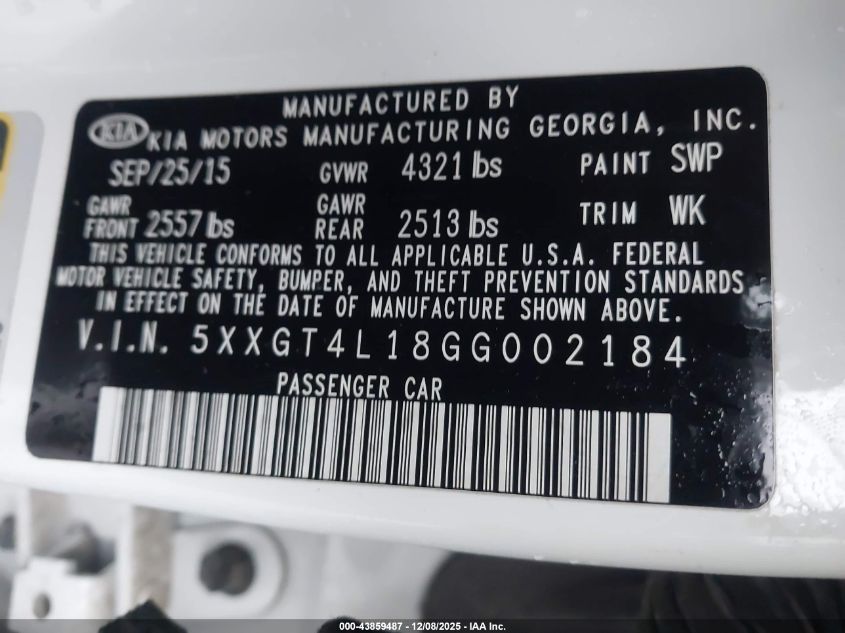 2016 KIA OPTIMA 2016 року Бензин, 1.6, Передний привод, vin - 5XXGT4L18GG002184 из США