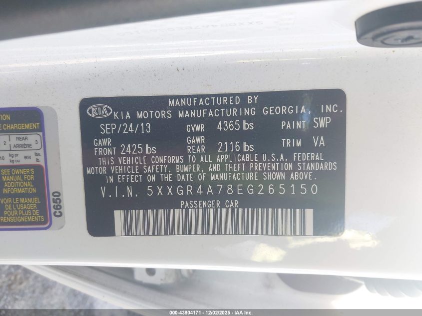 2014 KIA OPTIMA 2014 року Бензин, 2.4, Передний привод, vin - 5XXGR4A78EG265150 из США