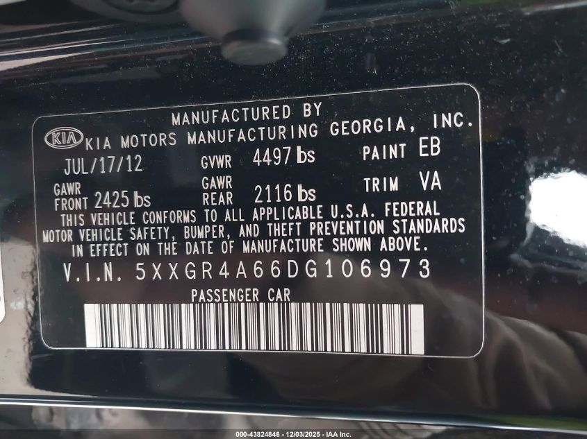 2013 KIA OPTIMA 2013 року Бензин, 2.0, Передний привод, vin - 5XXGR4A66DG106973 из США