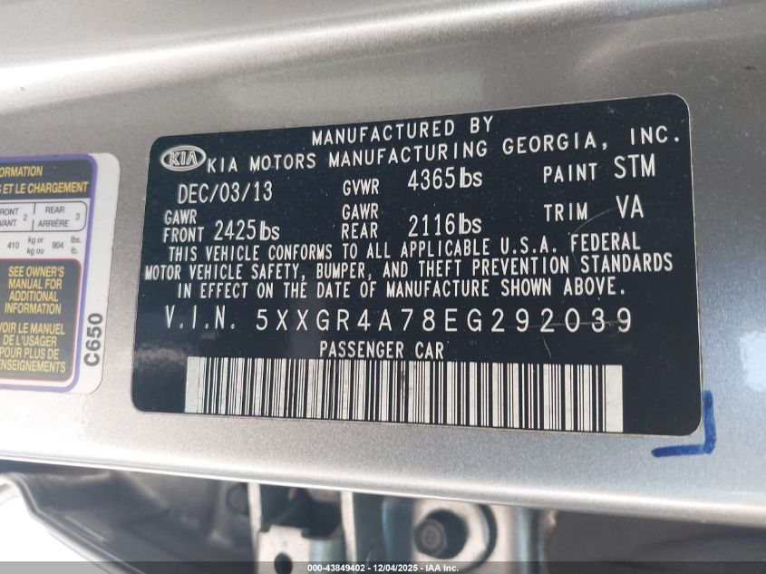 2014 KIA OPTIMA 2014 року Бензин, 2.4, Передний привод, vin - 5XXGR4A78EG292039 из США