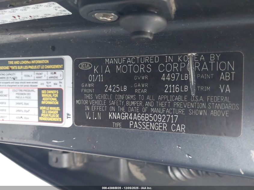 2011 KIA OPTIMA 2011 року Бензин, 2.0, Передний привод, vin - KNAGR4A66B5092717 из США