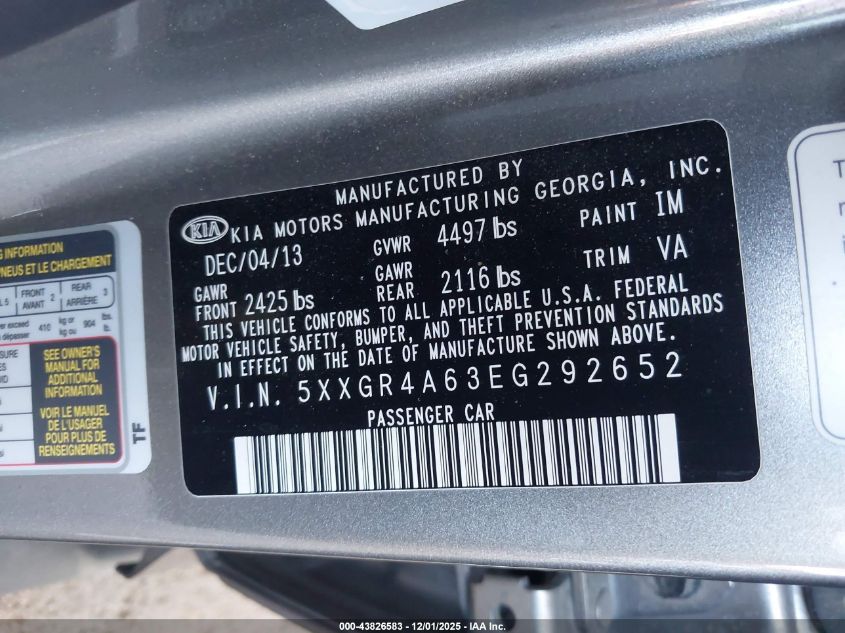 2014 KIA OPTIMA 2014 року Бензин, 2.0, Передний привод, vin - 5XXGR4A63EG292652 из США