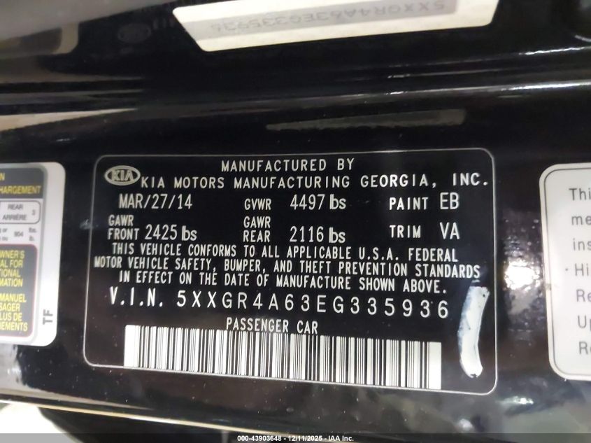 2014 KIA OPTIMA 2014 року Бензин, 2.0, Передний привод, vin - 5XXGR4A63EG335936 из США