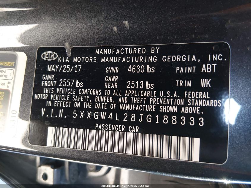 2018 KIA OPTIMA 2018 року Бензин, 2.0, Передний привод, vin - 5XXGW4L28JG188333 из США