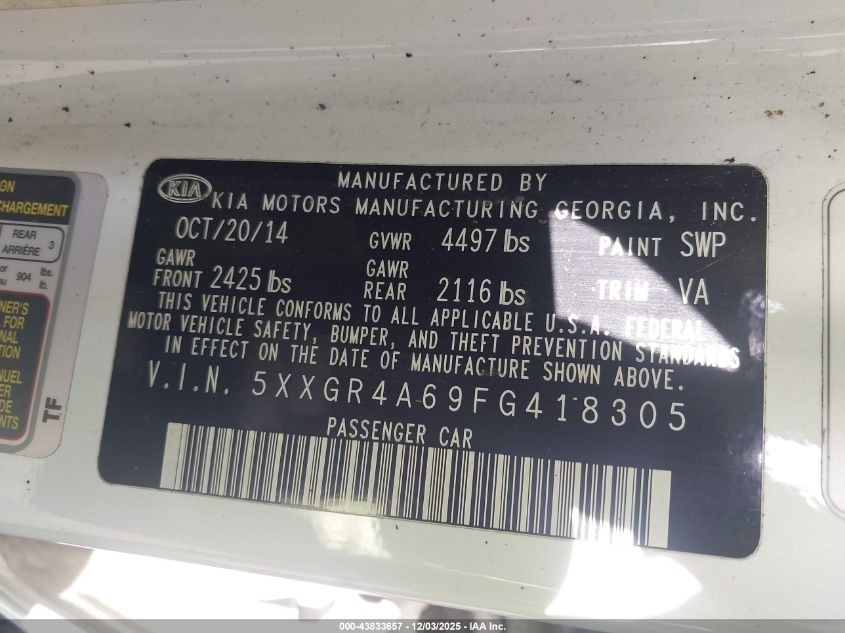 2015 KIA OPTIMA 2015 року Бензин, 2.0, Передний привод, vin - 5XXGR4A69FG418305 из США