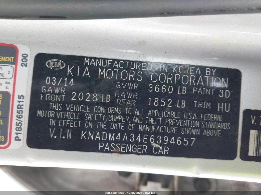 2014 KIA RIO 2014 року Бензин, 1.6, Передний привод, vin - KNADM4A34E6394657 из США
