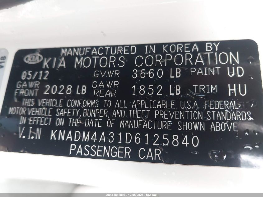 2013 KIA RIO 2013 року Бензин, 1.6, Передний привод, vin - KNADM4A31D6125840 из США