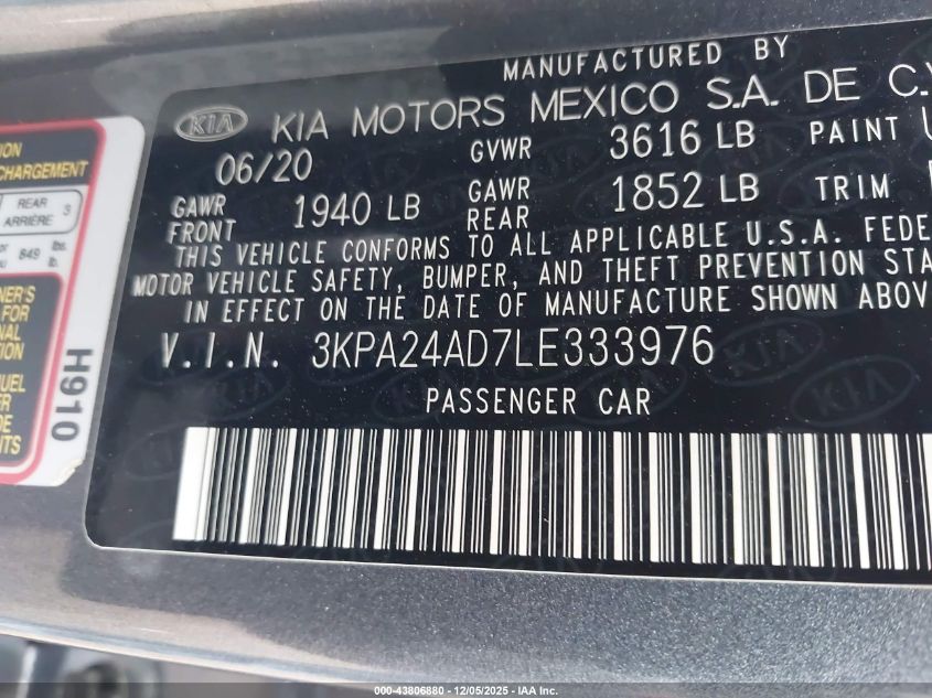 2020 KIA RIO 2020 року Бензин, 1.6, Передний привод, vin - 3KPA24AD7LE333976 из США