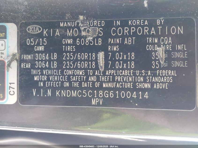Цвет СерыйЦилиндры 6Привод Передний приводVIN KNDMC5C18G6100414Состояние Заводится и едет (проверено)Повреждения По бокам AutoRIA