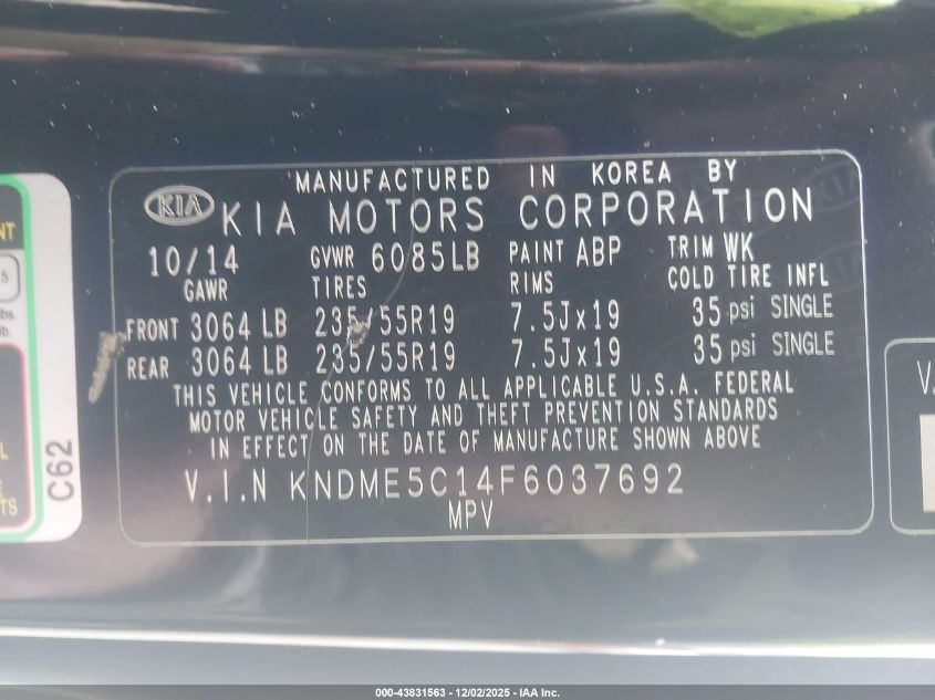 2015 KIA SEDONA 2015 року Бензин, 3.3, Передний привод, vin - KNDME5C14F6037692 из США