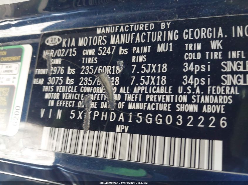 2016 KIA SORENTO SX