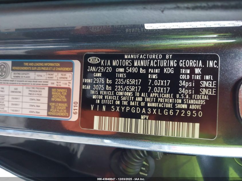 2020 KIA SORENTO 2020 року Бензин, 2.4, Полный привод, vin - 5XYPGDA3XLG672950 из США