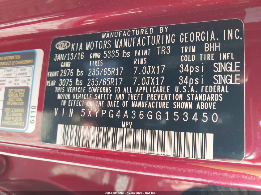 2016 KIA SORENTO 2016 року Бензин, 2.4, Передний привод, vin - 5XYPG4A36GG153450 из США