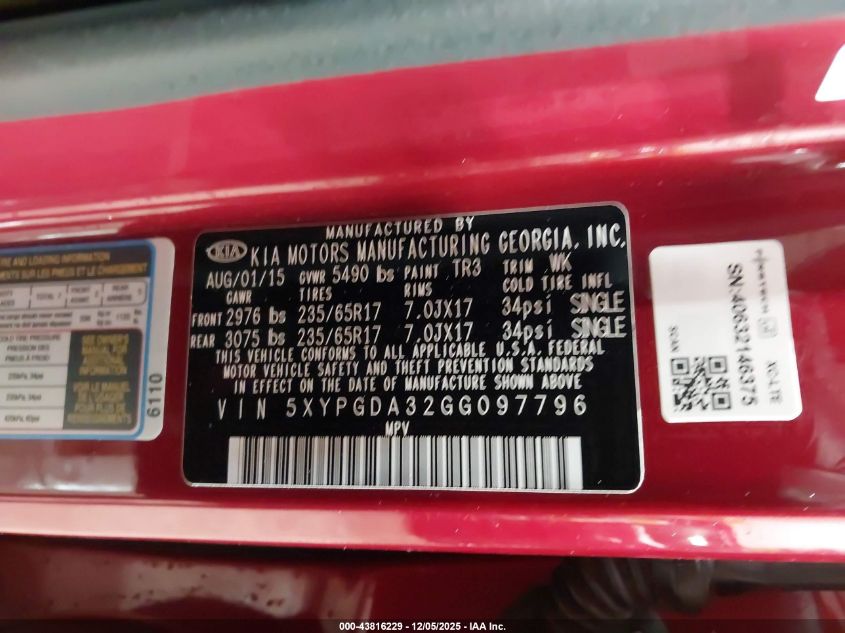 2016 KIA SORENTO 2016 року Бензин, 2.4, Полный привод, vin - 5XYPGDA32GG097796 из США