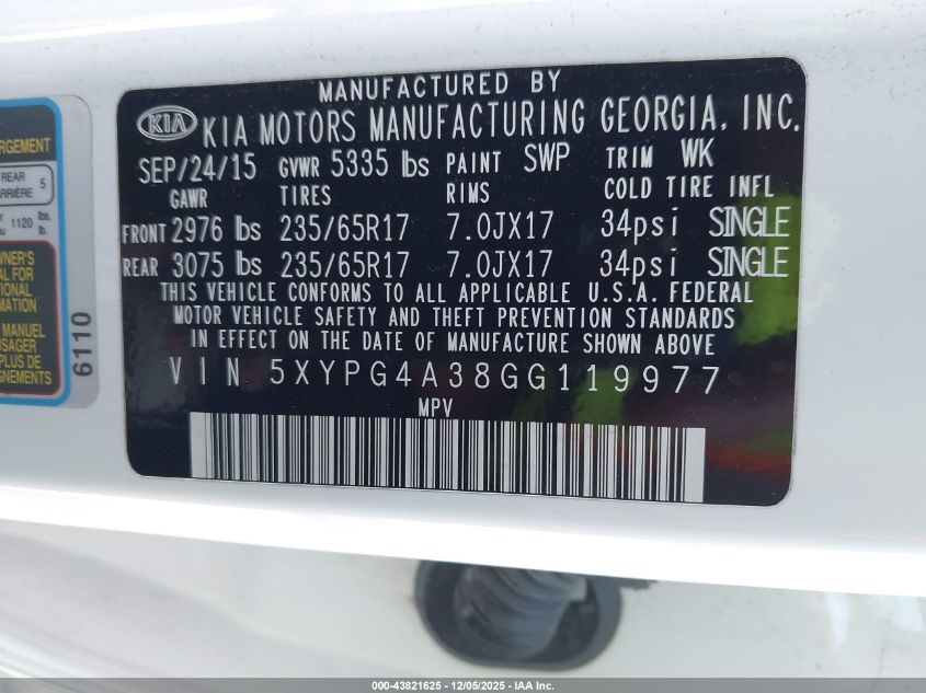 2016 KIA SORENTO 2016 року Бензин, 2.4, Передний привод, vin - 5XYPG4A38GG119977 из США