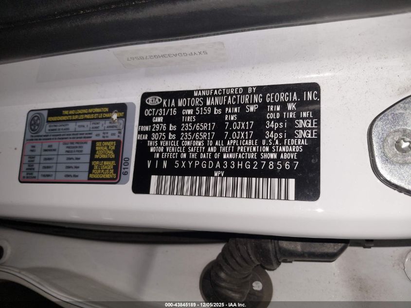 2017 KIA SORENTO 2017 року Бензин, 2.4, Полный привод, vin - 5XYPGDA33HG278567 из США