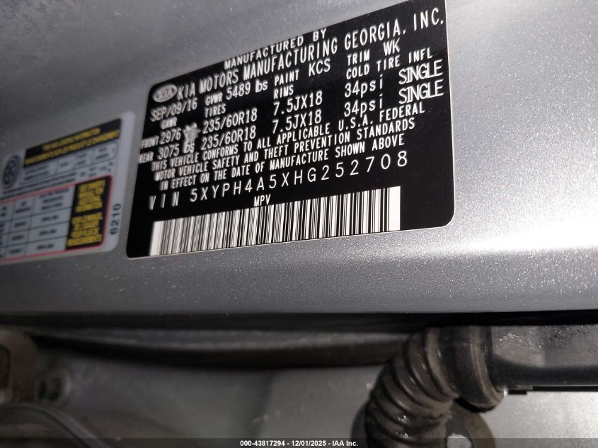 2017 KIA SORENTO 2017 року Бензин, 3.3, Передний привод, vin - 5XYPH4A5XHG252708 из США