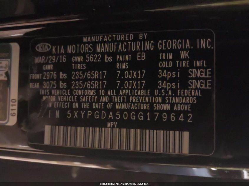 2016 KIA SORENTO 2016 року Бензин, 3.3, Полный привод, vin - 5XYPGDA50GG179642 из США