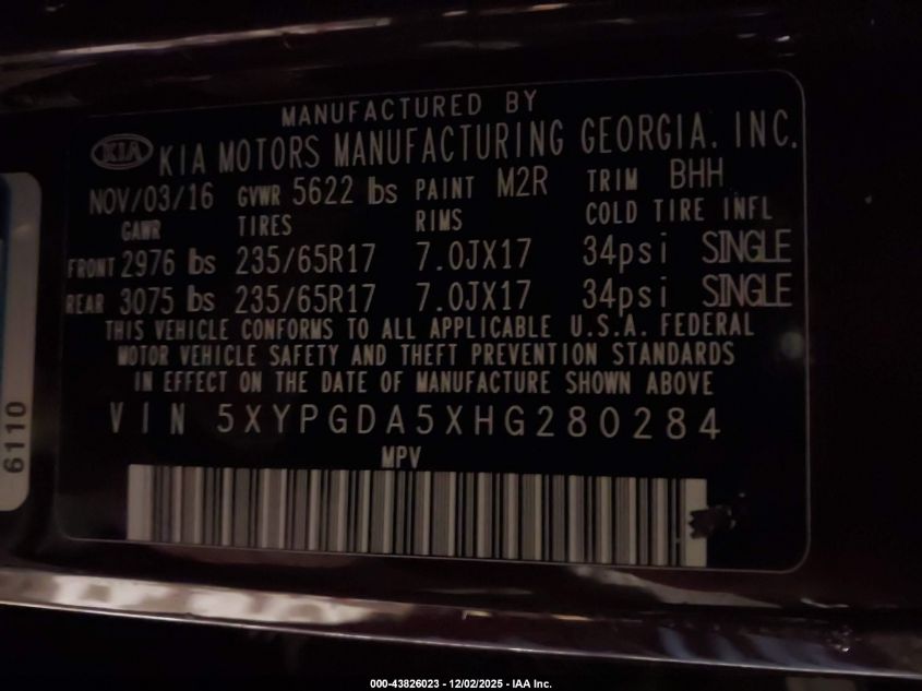 Цвет БордовыйЦилиндры 6Привод Полный приводVIN 5XYPGDA5XHG280284Состояние СтационарноПовреждения Передняя или задняя AutoRIA