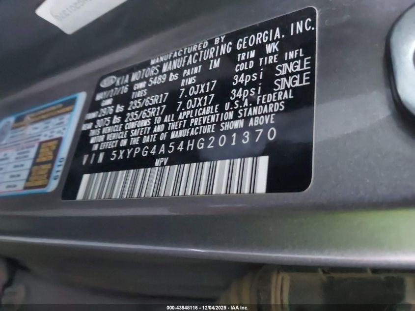 2017 KIA SORENTO 2017 року Бензин, 3.3, Передний привод, vin - 5XYPG4A54HG201370 из США