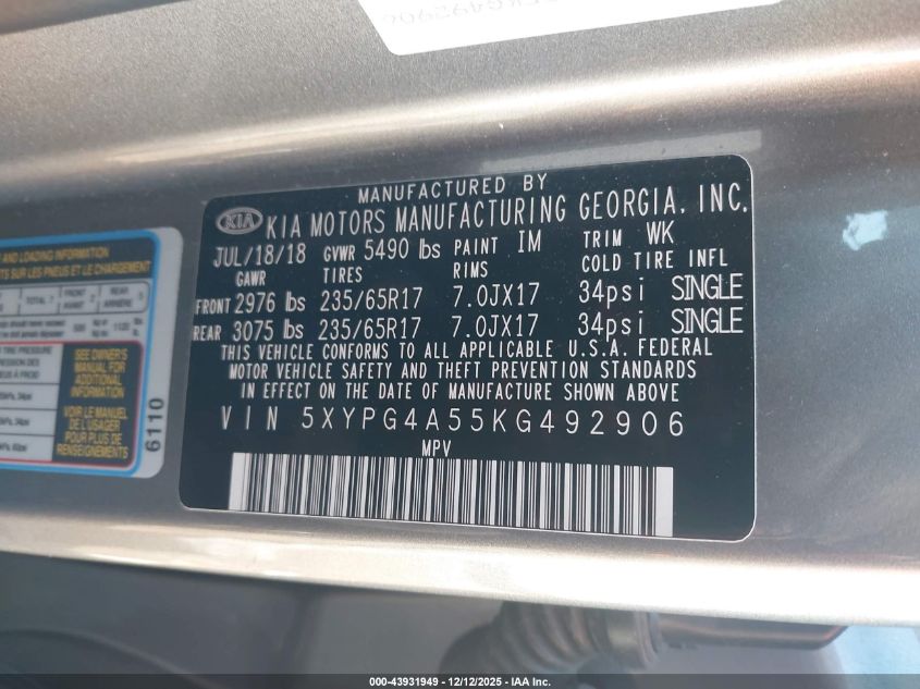 2019 KIA SORENTO 2019 року Бензин, 3.3, Передний привод, vin - 5XYPG4A55KG492906 из США