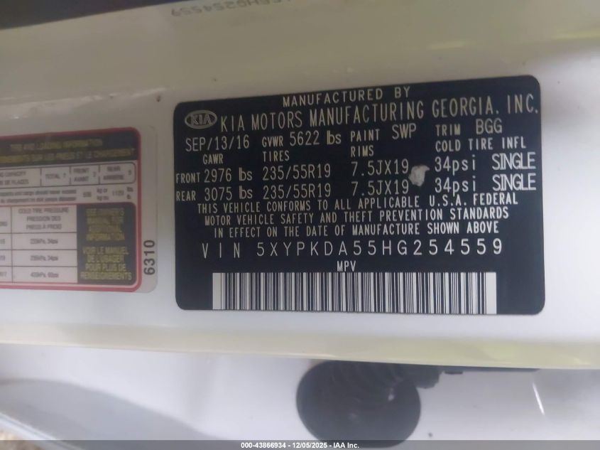 Цвет БелыйЦилиндры 6Привод Полный приводVIN 5XYPKDA55HG254559Состояние СтационарноПовреждения Обычный износ AutoRIA