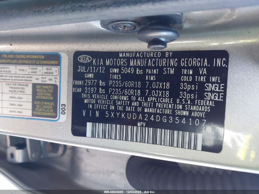 2013 KIA SORENTO 2013 року Бензин, 3.5, Полный привод, vin - 5XYKUDA24DG354107 из США