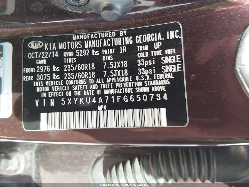 2015 KIA SORENTO 2015 року Бензин, 3.3, Передний привод, vin - 5XYKU4A71FG650734 из США
