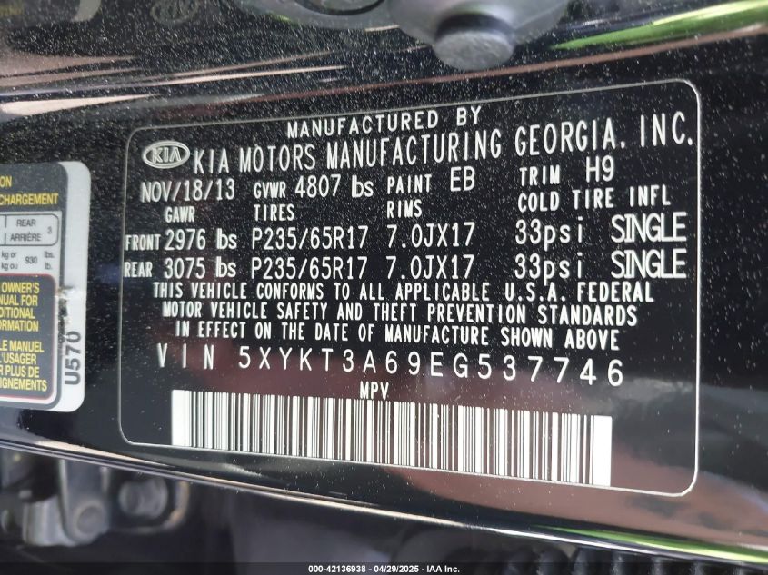 2014 KIA SORENTO 2014 року Бензин, 2.4, Передний привод, vin - 5XYKT3A69EG537746 из США