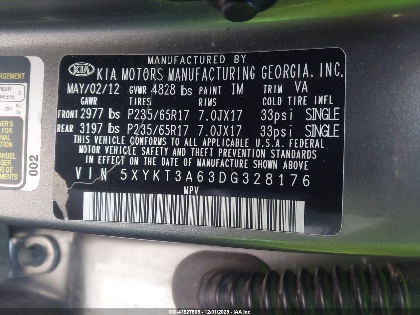 2013 KIA SORENTO 2013 року Бензин, 2.4, Передний привод, vin - 5XYKT3A63DG328176 из США