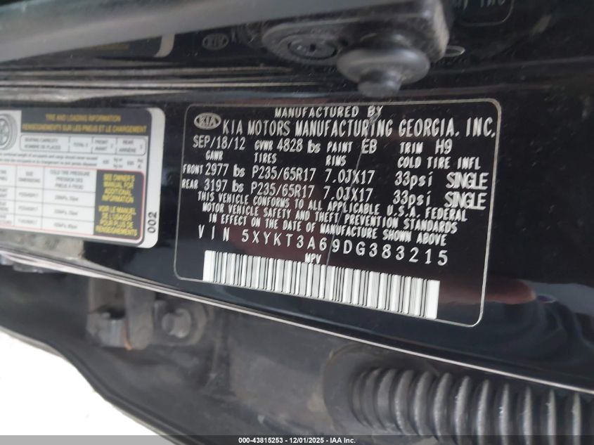 2013 KIA SORENTO 2013 року Бензин, 2.4, Передний привод, vin - 5XYKT3A69DG383215 из США